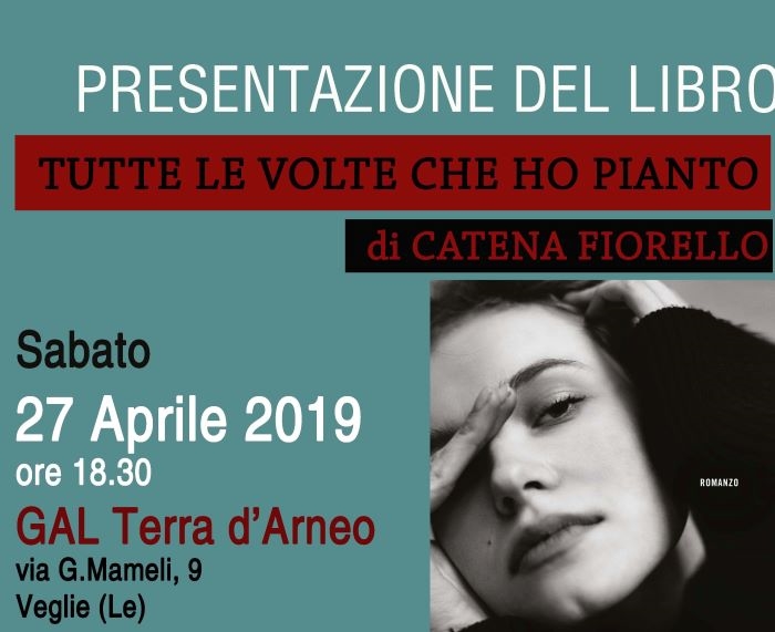 VEGLIE – Fa tappa in Salento la scrittrice Catena Fiorello, sorella di Rosario e Beppe, che presso il Gal Terra d’Arneo presenterà il suo ultimo lavoro pubblicato dalla casa editrice Giunti “Tutte le volte che ho pianto”.