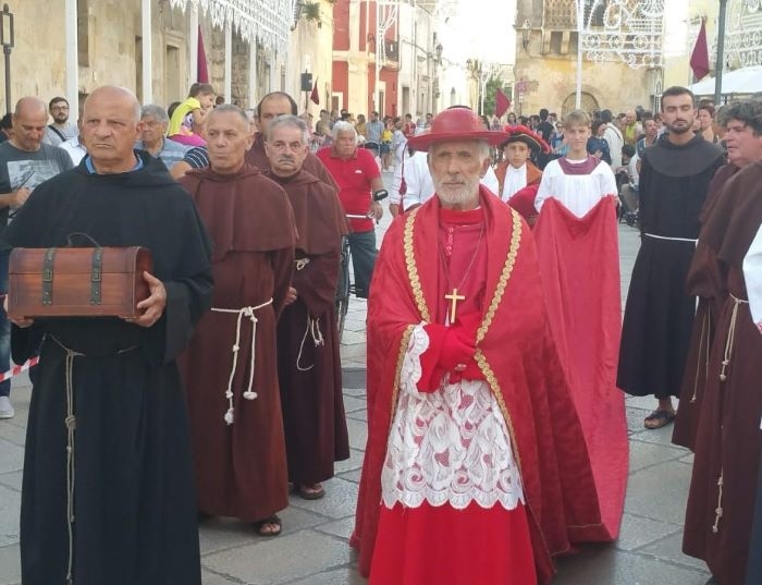 Si tratta della rievocazione dell’arrivo da Napoli, il 6 aprile 1722, dell’ostensorio con l’ampolla contenente il sangue di San Vito Martire, donata dai monaci Gesuiti. Quel giorno ad attendere le Reliquie c’erano il sindaco Nicola Saverio Bove, il barone Francesco Antonio Marisco, il notaio Vito Antonio Giancane, il Giudice Leonardo Pascali e l’intera cittadinanza. Il Corteo di oggi riproporrà, appunto, quella storica giornata.