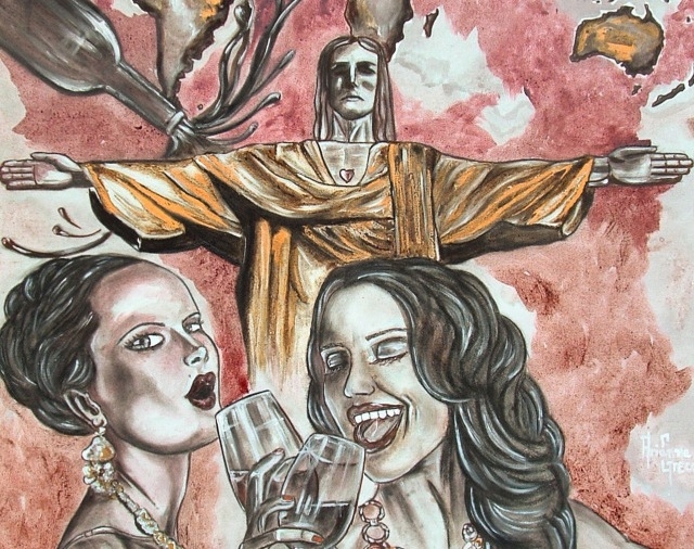 La cerimonia di inaugurazione si terrà alla presenza dell’autrice. L’opera, realizzata su tela canvas a grana media, raffigura il Cristo Redentore di Corcovado, statua simbolo del Brasile, sormontato dai cinque continenti. Tutta l’immagine viene bagnata dal vino che fuoriesce da una bottiglia. Il vino, appunto, è “l’anima dell’evento che con il suo scorrere abbraccia ogni cultura e ogni popolo”.