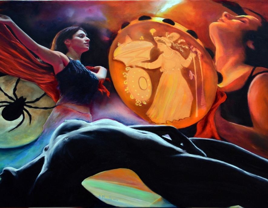 Dell’opera premiata, il critico Francesco Urso fra l’altro ha detto: “L’identità del passato e del presente vengono saldate, come da un ponte, dalle curve sinuose e calde dei corpi delle donne e dai plastici movimenti e dagli sguardi propri dell’estasi. I simboli e gli strumenti delle danze bacchiche sono il sigillo di questo potente messaggio all’uomo”.