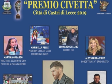 Torna oggi a Castrì di Lecce la serata del “Premio Civetta”, riconoscimento ideato dall’associazione “La Civetta” che si avvale del sostegno del Comune di Castrì e della direzione artistica del giornalista del Tg2 Vito Bruno, che conduce la serata.