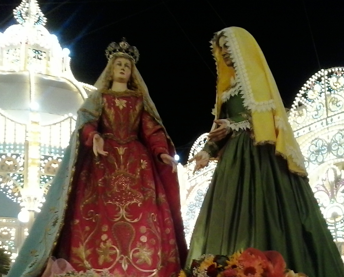 In Chiesa, la Madonna della Visitazione, adornata con gli abiti festivi di seta ricamati in oro, con il volto maestoso, regale, attendeva tutti. I Frati celebravano la Messa Solenne ed i fedeli, accalcati in chiesa, riempivano anche il Sagrato, assistendo devotamente.