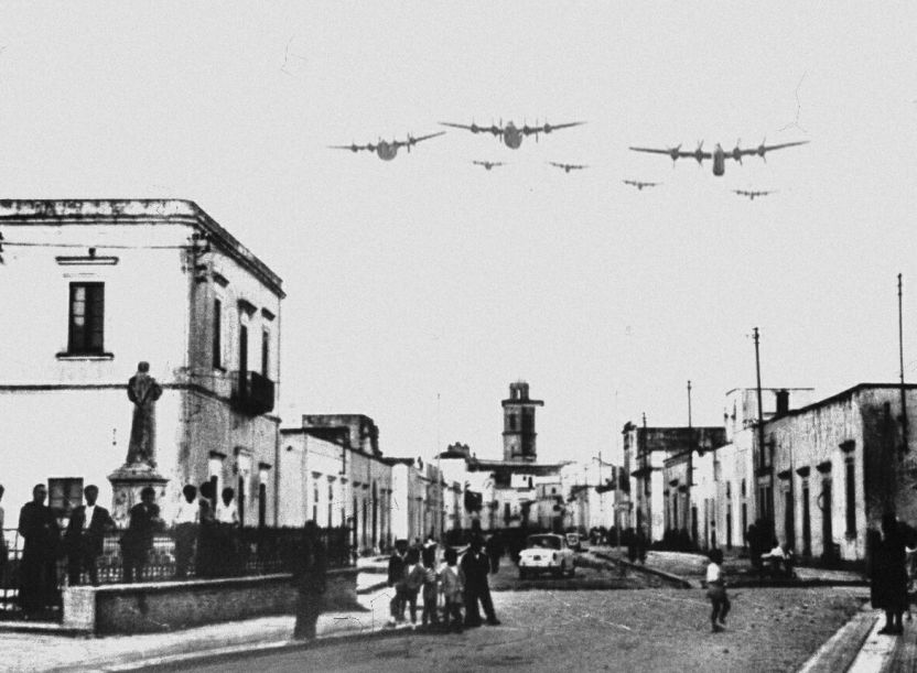 Era il 1943 e in quei tre anni di guerra già passati, sebbene il Salento fosse relativamente coinvolto negli scenari più terrificanti del secondo conflitto mondiale, in paese si viveva un clima carico di tensione. Al calare delle tenebre l’ansia, la paura e l’angoscia coinvolgevano tutti, senza alcuna distinzione tra i favorevoli e i contrari al regime fascista. Gli orecchi erano costantemente tesi e pronti a captare ogni minimo colpo di artiglieria o fragore di bombe, anche i più lontani, mentre gli occhi scrutavano i segnali che giungevano dal cielo. Guardando in lontananza, verso tramontana, si vedevano distintamente i fasci di luce rilasciati dai fari delle contraeree poste a difesa del porto di Brindisi, i lampi del fuoco dei cannoni ed il bagliore dei candelotti bengala, lanciati dai bombardieri dell’aviazione americana ancor prima dell’inizio del bombardamento vero e proprio. Bagliori e cupe detonazioni riempivano l’aria e, salendo sulla terrazza, ci si accorgeva che provenivano da Sud verso Galatina dove era sito l’aeroporto di Lecce, uno dei centri più importanti dell’aviazione italo - tedesca.