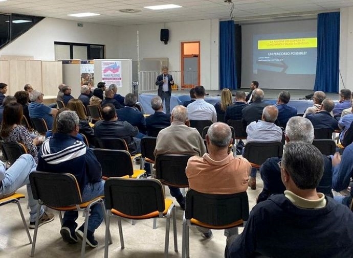 SALICE – Opportunità e rischi dalla fusione di Salice e Guagnano. È iniziato il dibattito pubblico sul progetto. Un incontro si è svolto venerdì scorso nel Centro polifunzionale con la partecipazione dell’esperto professore Luigino Sergio e dell’avvocato Francesco Fina (del comitato di cittadini promotore dell’iniziativa). Fra i presenti il sindaco di Guagnano Dino Sorrento e consiglieri di maggioranza ed opposizione dei due Comuni. Assente il sindaco di Salice Tonino Rosato.