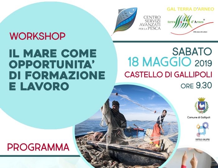 Di questi temi si occuperà il primo workshop a cura del Gal Terra d’Arneo in programma per sabato 18 maggio, al Castello di Gallipoli. L’appuntamento, destinato agli Istituti scolastici della Terra d’Arneo e agli imprenditori ittici che operano nei Comuni del Gal facenti parte del Compartimento marittimo di Gallipoli, si configura come il primo di una serie di appuntamenti destinati a favorire il confronto tra i protagonisti dei settori della pesca, le scuole del territorio e tutte le istituzioni che concorrono, ognuna a suo modo, ad imprimere cambiamenti positivi sulla gestione della risorsa blu.