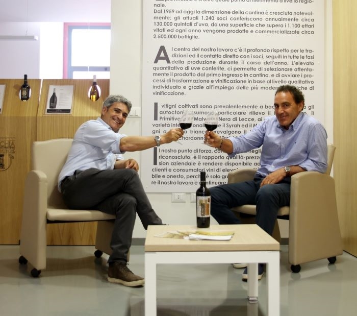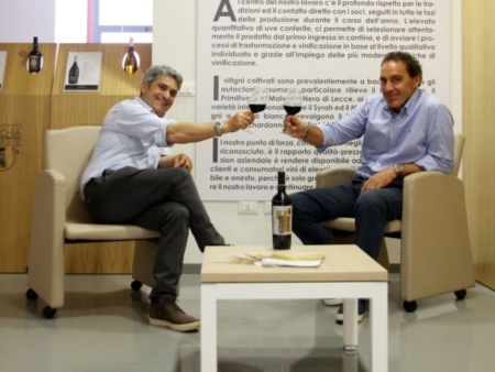 Nella foto in alto: Antonio Tumolo, presidente di "Vecchia torre", ed Ennio Cagnazzo, enologo e direttore tecnico della cantina