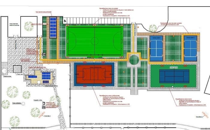 “Oltre agli interventi di efficientamento termico e solare – si legge in una nota del Comune - i lavori renderanno autonomo lo stadio dal punto di vista energetico. Sono previsti interventi di riqualificazione e completamento dell’area sportiva polivalente annessa al campo da calcio con riqualificazione del campo da calcetto con manto in erba sintetica ed illuminazione a Led, la ristrutturazione del campo da basket e del campo da tennis e la realizzazione di 2 nuovi campi da padel. Nel frattempo proseguono i lavori per rendere agibile il campo sportivo, allacciato alla rete fognaria ed idrica, e si sta procedendo con la gara per l'illuminazione del campo da calcio e con il remissage dell'intera struttura sportiva, in maniera che possa essere fruibile per il prossimo autunno”. (red.)